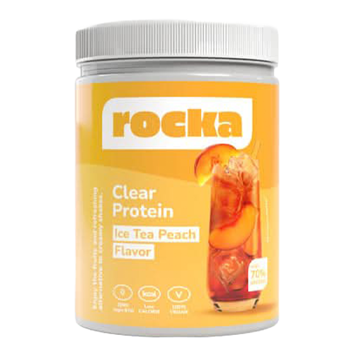 Proteinhydrolysat mit Pfirsich-Eistee-Geschmack mit Süßungsmittel zur Zubereitung eines klaren Proteinshakes.